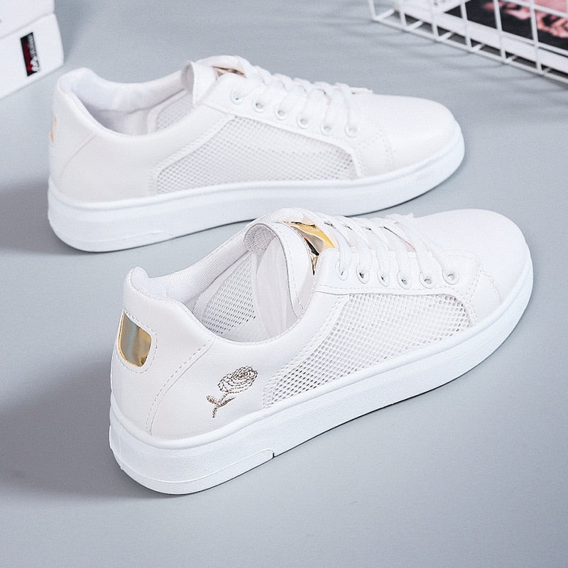 Floral Elegance: 2025 Spring Autumn Lace-Up Women's Running Shoes.